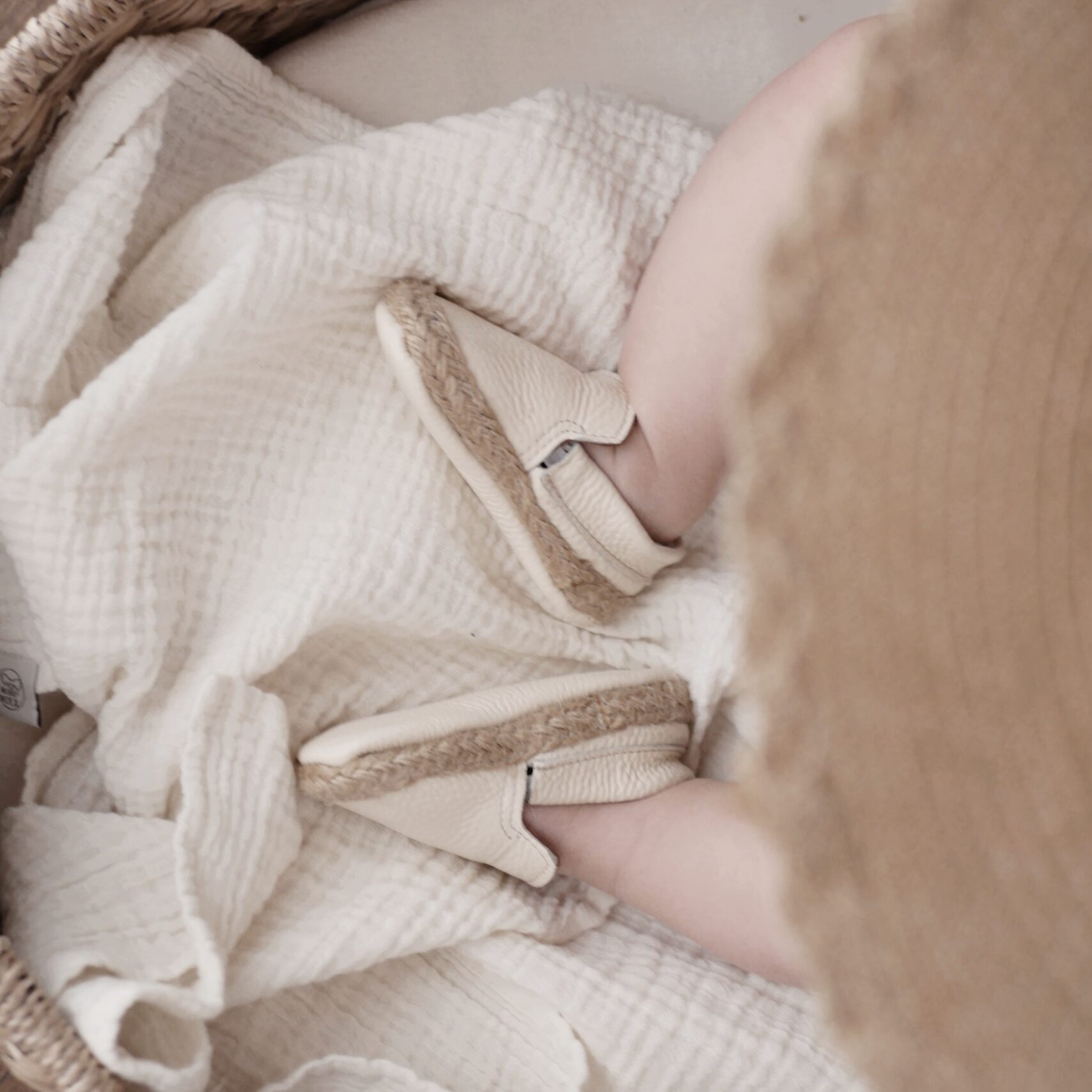 Dessa charmiga babyespadriller kombinerar stil och komfort med mjukt fårskinnsläder. Perfekta för mildare temperaturer har Bambam en slitstark läderutsida som är lätt att rengöra. Designade för både bekvämlighet och elegans är de ett tidlöst tillskott i din bebis garderob.
