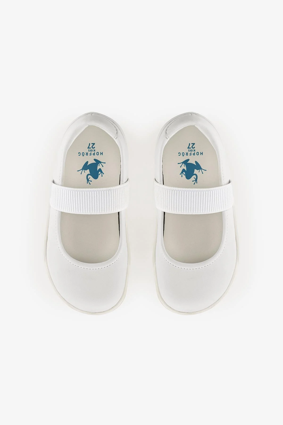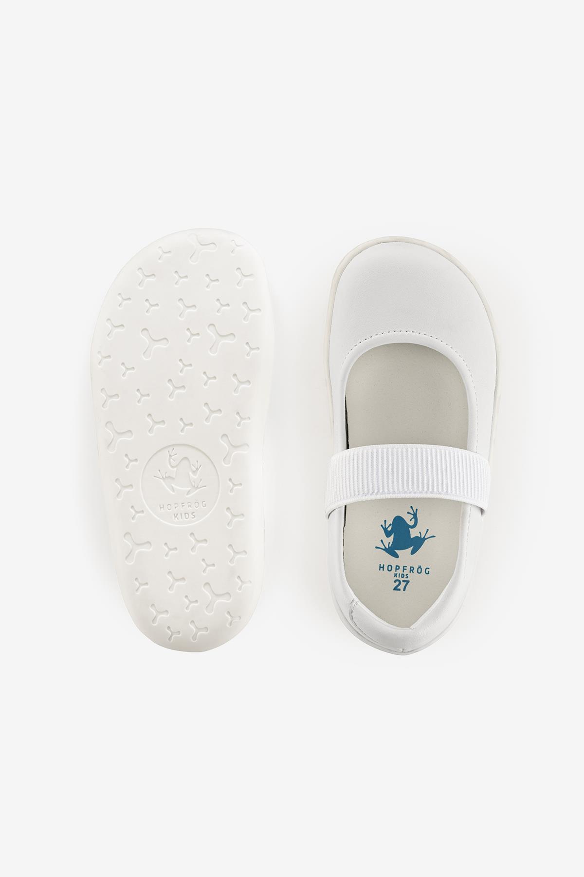 Dessa barfotaskor i BioVegan™-läder låter små fötter glänsa samtidigt som de får full rörelsefrihet. Den elastiska remmen gör dem enkla att ta på och håller skon på plats hela dagen. Med sin flexibla sula och mjuka passform stödjer de barnets naturliga steg – perfekta för både fest och vardag.