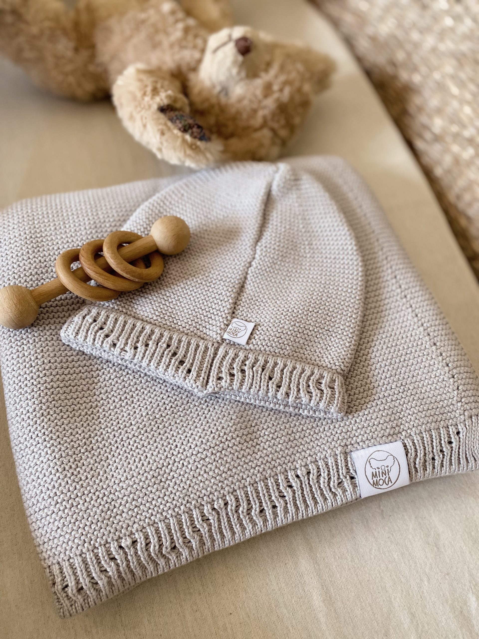 Ge ditt barn en trygg och varm start i livet med vårt MiniLuna-set. Den mjuka filten och den stickade mössan i ekologisk bomull omfamnar ditt barn med värme och omtanke – en naturlig gåva från hjärta till hjärta.